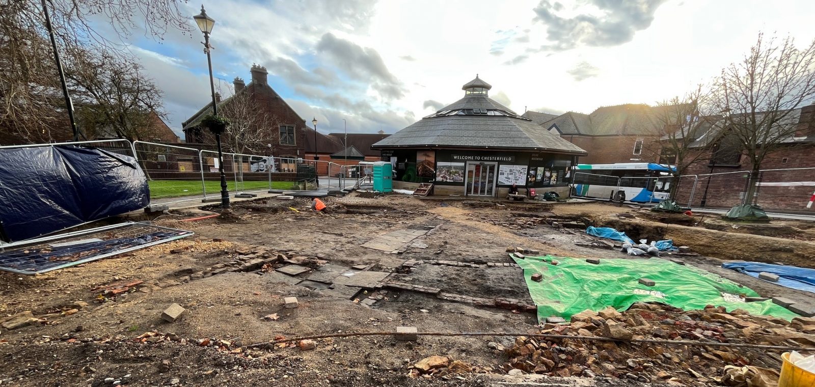 John started by giving some context to the excavation – the need for which was established when contractors involved in the ‘Revitalising the Heart of Chesterfield’ works discovered some human remains. Perhaps not surprisingly these were found in the site of the former graveyard. It was clear that archaeology on the site required further investigation – mainly in the area where the existing square, in front of what was the visitor information centre, is situated.